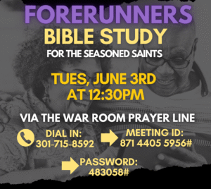 Forerunner’s Bible Study Dial In: 1-301-715-8592 Meeting ID: 871 4405 5956# Passcode: 483058# ... 21 Apr 12:30 pm - 1:30 pm VirtualVirtual