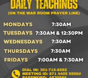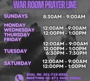 The War Room – Early Morning Prayer Dial In Number: 1-301-715-8592 Meeting ID: 871 4405 5956# Participant ID: Please ... 21 Apr 12:00 am - 9:00 am VirtualVirtual